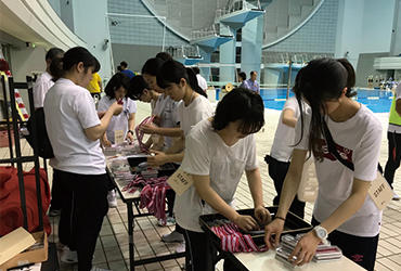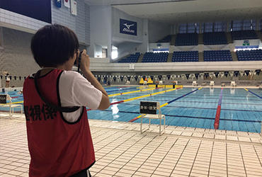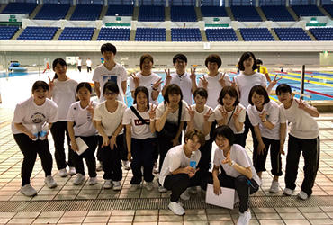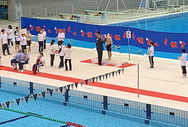 6月2日(日) 、千葉国際水泳場で千葉県障害者スポーツ大会(水泳競技)が開催され、成田キャンパスの理学療法学科の2~4年生17名がボランティアとして参加しました。大会当日は、会場の巡回、選手確認、表彰式を担当しました。各々が選手に対して積極的に意思疎通をはかり、サポートしてほしいことを聴取したことで、臨機応変に行動することができました。また、障がい者がスポーツを行ううえでのリスク管理をはじめ、現場経験を通じて学ぶことが多い一日でした。今回経験したことを、今後の学生生活に生かしていきたいと思います。