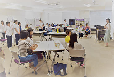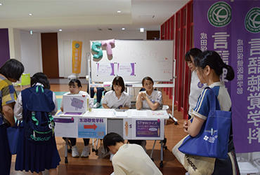 言語聴覚学科のオープンキャンパスは、学生が積極的にリードしながら来場者をお迎えするのが恒例で、毎回大好評を得ています。8月開催のオープンキャンパスでは1~3年生37人とOB・OG(大田原キャンパス卒業の現役言語聴覚士)2人が担当してくれました。