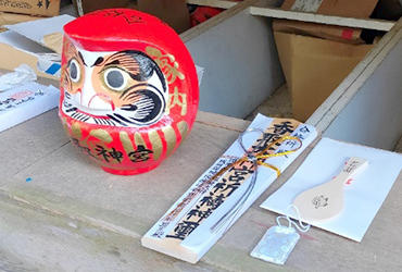 卒業生とともに合格祈願ダルマを供養