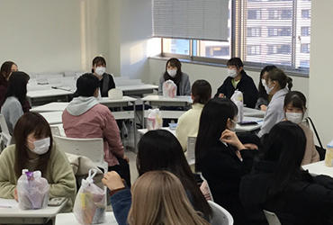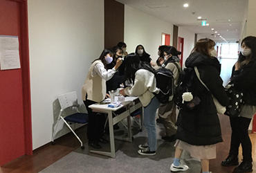 対面授業開始に伴い、2年生中心の実行委員会メンバーが企画・運営を担い、12月16日に新入生歓迎会を開催しました。1年生100人、2年生21人、3年生4人と多くの方が参加してくれました。今年は、恒例のダンス部によるパフォーマンスやゲーム大会はできませんでしたが、テーブルを輪にして1年生と先輩が向かい合う形に座り、実習やテスト勉強に関する質問や高校時代の部活についての話などいろいろな話題で盛り上がっていました。最初は緊張している様子だった1年生も話しているうちに緊張がほぐれ、楽しく会話していたように思います。1年生からは、「先輩方からいろいろなお話が聞けてとても良かった」「自分たちのためにこのような会を開いてくれて感謝しています」「楽しかった」などの感想を聞くことができました。