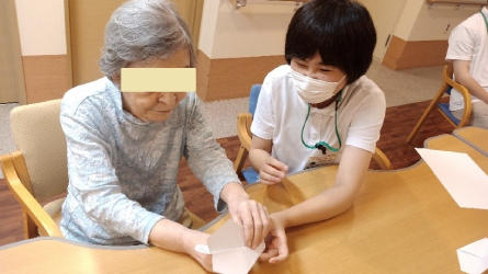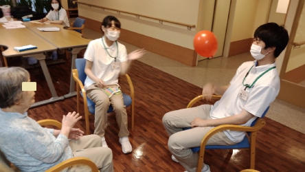 関連施設である新宿けやき園特別養護老人ホームでの実習では、徹底した感染対策のもと、学生が対象の高齢者様に楽しんでもらおうと企画した様々な作業活動を通して、身体の動きや生活に必要な能力の評価に努めていました。