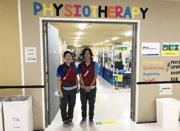 今大会には、日本全国各地から多くの理学療法士の先生方が参加されており、私の役目はポリクリニック理学療法室勤務の先生方がスムーズに診療を行えるよう、現場の流れをマネジメントすることでした。理学療法室を訪れるのは、日本語を母国語としない各国の選手やコーチ、スタッフであり、主に英語を用いてコミュニケーションをとりました。また国によっては、理学療法を実施する上で宗教などの文化的背景を考慮する必要がありました。こうした、日本で活動する上では遭遇しない局面をやりくりできたことは、私自身の視野を広げ、自信につながりました。
