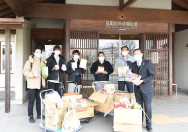 3月23日、学生有志によるボランティア活動「Food Drive」で集まった食料品403点、文房具等341点、寄付金(食料品を購入)18,461円を社会福祉法人成田市社会福祉協議会へ寄託致しました。「Food Drive」は、医学部1年生の有志が集まり企画・実施をしたもので、本学成田キャンパスの学生・教職員を対象に寄付を募りました。コロナ禍の中で思うように活動をすることができない期間もありましたが、ポスターやメール、LINEなど様々なツールを駆使し告知を行い5日間で今回の品々を集めました。成田市社会福祉協議会の担当者の方からは、「缶詰やレトルト食品など種類が多く、また日持ちがする食品はとても有難いです。」といった声をいただきました。