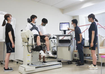 模擬授業のほかには、実際に学生スタッフと共に義足体験、物理療法体験やIn Body体験を行いました。他にも筋力測定(BIODEX)を行い、膝を伸ばす時の角度の違いによる筋肉の伸び縮みを計測し、そのデータを基に教員がメカニズムについて解説しました。体験を通して、理学療法とはどういうものかという理解を深める機会になったと感じました。また、物理療法体験のパラフィン浴や義足体験などは、普段の生活の中で触れる機会が少ないので貴重な経験になったと思います。