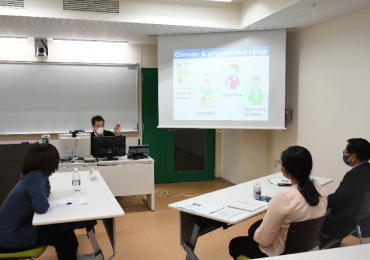 初めに、多職種連携とその教育の重要性について、成田キャンパス理学療法学科准教授の牧原より話題提供がありました。本学の開設からの歴史や、3つの基本理念の1つである「国際性を目指した大学」に基づき、多職種連携が必要である理由を説明しました。多職種連携教育についてのディスカッションでは、国による違いが明確で、とても刺激的な内容でした。