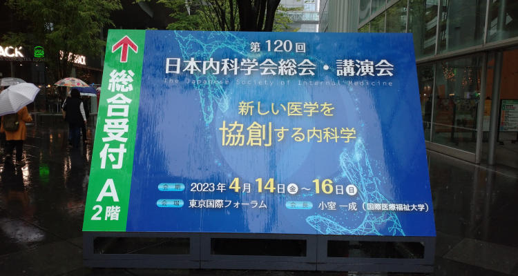 第120回日本内科学会総会・講演会を、2023年4月14日(金)、15日(土)、16日(日)の3日間にわたり、東京国際フォーラムにおいて開催しました。日本内科学会は1903年に創設されて以来発展を続け、現在117,852人の会員数を持つわが国最大の医学会です。今回も前回に引き続き、対面とwebを用いたハイブリッド形式での開催としました。中日は生憎の雨となりましたが、3日間で8,000人余りの方にご来場いただき、webを含めた合計参加者は42,590人でした。メイン会場である東京国際フォーラムのホールAもかなり多くの方が来場され、久しぶりに活気のある講演会となりました。