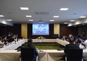医学部棟入口の階段で記念撮影を行った後、一行と本学関係者は本学グループの紹介DVDを見ながらランチミーティングを行いました。鈴木学長により、チョーライ病院の経営管理に係る本学の専門教員の長期派遣、同院内に身体障害者支援センターを設立した草の根プロジェクト、本格的な日本式人間ドックセンター「HECI」の開設、学費、教材費、交通費、住宅費までをフルサポートするIUHW奨学金制度とIUHW医学部奨学金制度の設置など、これまで本学とベトナムとの間で教育や医療に関して築いてきた協力関係について説明すると、ダオ・ホン・ラン保健大臣は「本日はこのようなお時間をお作りいただきありがとうございます。また、これまでに国際医療福祉大学の皆様方からベトナムにお寄せいただいた気持ちに感謝いたします。ベトナムでは医療福祉分野における人材育成が重要視されておりますので、今後も協力を得ながら学生を中心とする人材育成に注力してまいりたいと思います」と述べました。