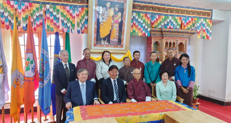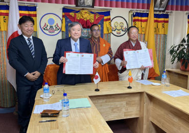 タイからブータンに入った高木理事長、鈴木学長は7月11日、教育省を訪問し、ブータン政府から選定された成績トップの学生を本学医学部で受け入れるためのMOUを王立公務員委員会と締結しました。医学部がないブータン王国では、成績最優秀の高校生から40人前後が奨学生として選定され、インド、パキスタン等の近隣国の医学部に留学し、卒業後母国に戻って医師として従事するシステムが確立されています。