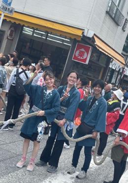 実際に参加してみて、成田祇園祭の盛り上がりを間近で感じることができてとても楽しかったです。屋台を引く時の一体感や、坂を全員でリズムを合わせながら上る時の高揚感、一気に坂を駆け上がりきった時の爽快感は、実際に屋台を引く一員にならないと味わえなかったと思います。歴史と伝統がつまった成田祇園祭に、屋台を引くというかたちで関わることができたのは、かけがえのない貴重な経験になりました。もし機会があればまた参加したいです。
