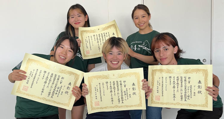 成田キャンパスボート部は、2023年8月に行われた『第66回東日本医科学生総合体育大会』に出場し、漕手4名、コックス1名の計5名の選手で行うチーム競技の「女子クォドプル」で2位の好成績をおさめました。