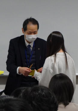 国家試験まで残りわずかとなり、放射線・情報科学科では壮行会を行いました。一人ずつ受験票を上田学科長から受け取り、これまでご指導いただいた先生からの激励もありました。悔いのないよう落ち着いて実力を発揮していただきたいと思います。1期生、頑張れ!
