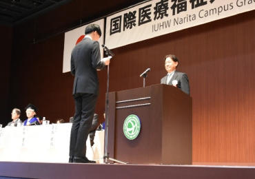 卒業生代表、理学療法学科の船渡健斗さんの謝辞の様子