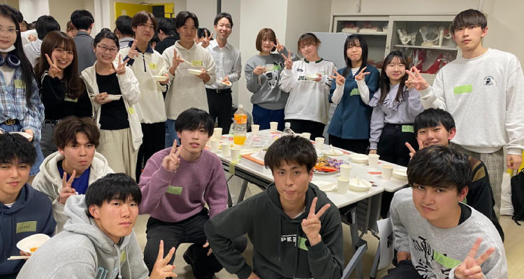 まずは、西田学科長から新学期幕開けに相応しいメッセージが贈られ、和やかな歓迎会が始まりました。開会は5次限目の授業の終了後とあって、お腹はペコペコです。テーブルには、美味しそうなオードブルやお菓子が用意されましたが、そこは2年生、ちょっと照れながら1年生に料理をすすめる姿が印象的でした。