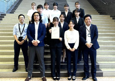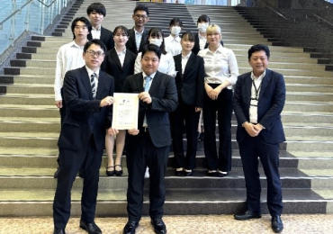 PT学科の学生は、日頃の授業でグループワークを行っており慣れているため、積極的に意見を出し、グループワークを引っ張っておりました。写真は、学生間投票で優秀賞を獲得したグループの表彰式の様子です。