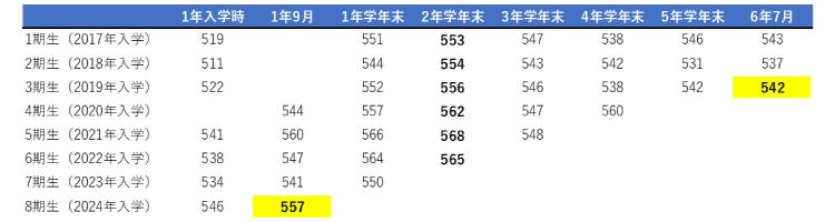 8期生の9月時の TOEFL ITP のスコアが11点アップの557点