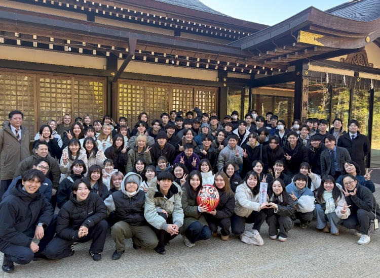 鹿島神宮では、ご祈祷を受け、「国際医療福祉大学 成田保健医療学部 理学療法学科一同」と神主に読み上げていただき、全員で二礼二拍一礼を行いました。ご祈祷後には、お札を受け取り、改めて一人ひとりの気が引き締まりました。