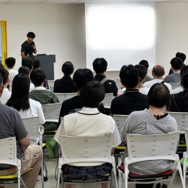 さらに、8月17日では目玉企画として、昨年度に続き、Jリーグの下部組織で理学療法士として勤務し、スポーツ現場の最前線で活躍している斉藤大樹さん(本学1期生)にお越しいただきました。斉藤さんには、仕事内容や成田キャンパスで学んで役に立ったことなどの講演や実技を行っていただきました。目玉企画には100名以上の方が聴講され、多くの方が質問されていたのが印象的でした。