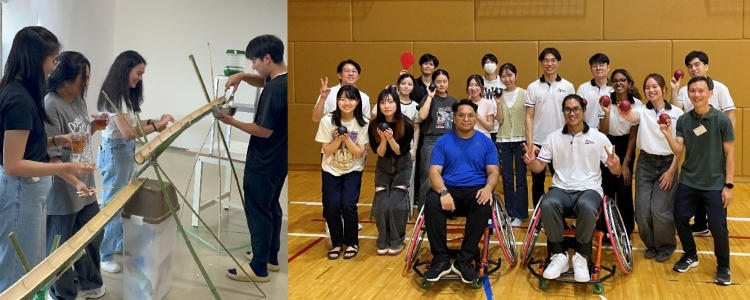 8月19日、21日に本学科ではシンガポール工科大学から研修生を迎え、作業療法と日本文化を学ぶ特別プログラムを実施しました。授業では、日本における作業療法の現状を具体的な実践内容を含めて紹介しました。研修生は、自国の状況と比較しながら理解を深め、活発な質疑応答を通じて相互の知見を交換しました。加えて、日本文化体験として「流しそうめん」を行いました。竹を使った伝統的な方法で水と麺を流し、箸で麺をすくう体験は、研修生にとって新鮮で大きな喜びとなりました。本学の作業療法学科学生もボランティアとして参加し、英語や身振り手振りを交えながら交流を楽しみました。異文化の中で協力し合うことで、語学力のみならず国際的な視野を広げる貴重な機会となりました。